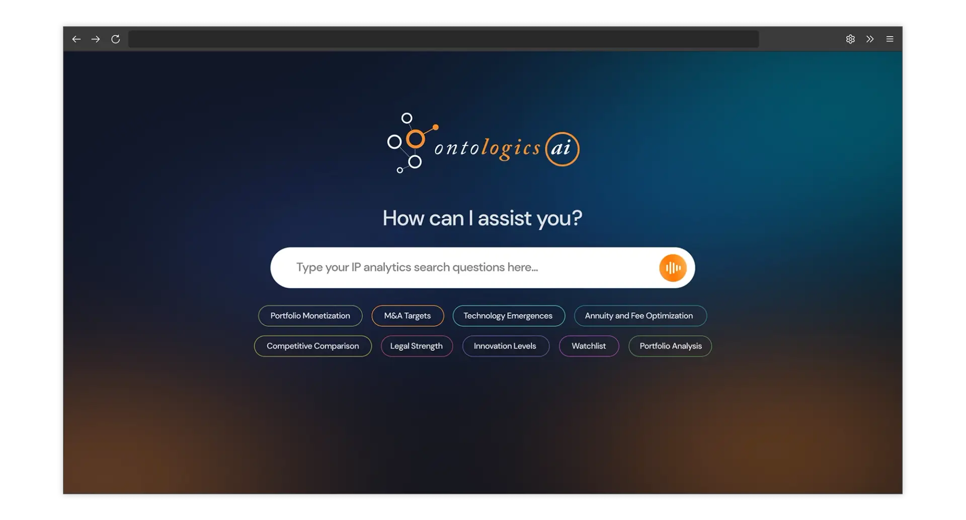 Ontologics puts the world of innovation, patents, and competitive intelligence in one powerful, interactive dashboard—giving you the clarity to act faster, smarter, and with total confidence.